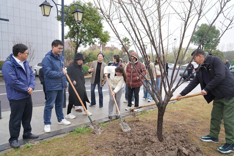 活動(dòng)現(xiàn)場(chǎng),氣氛熱烈。大家分工合作,配合默契,揮鍬鏟土、扶苗填坑、澆水灌溉,每一個(gè)環(huán)節(jié)都一絲不茍,認(rèn)真細(xì)致。經(jīng)過(guò)一番辛勤勞動(dòng),兩棵新栽種的樹苗迎風(fēng)挺立,為初春的大地增添了一抹新綠。