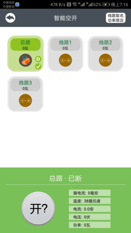 個(gè)人手機(jī)客戶端個(gè)人用戶通過(guò)手機(jī)號(hào)、微信、QQ登陸遠(yuǎn)程設(shè)置、查詢、遙控或定時(shí)開(kāi)關(guān)自動(dòng)完成漏電保護(hù)功能自檢分線路用電計(jì)量,故障實(shí)時(shí)報(bào)警等。