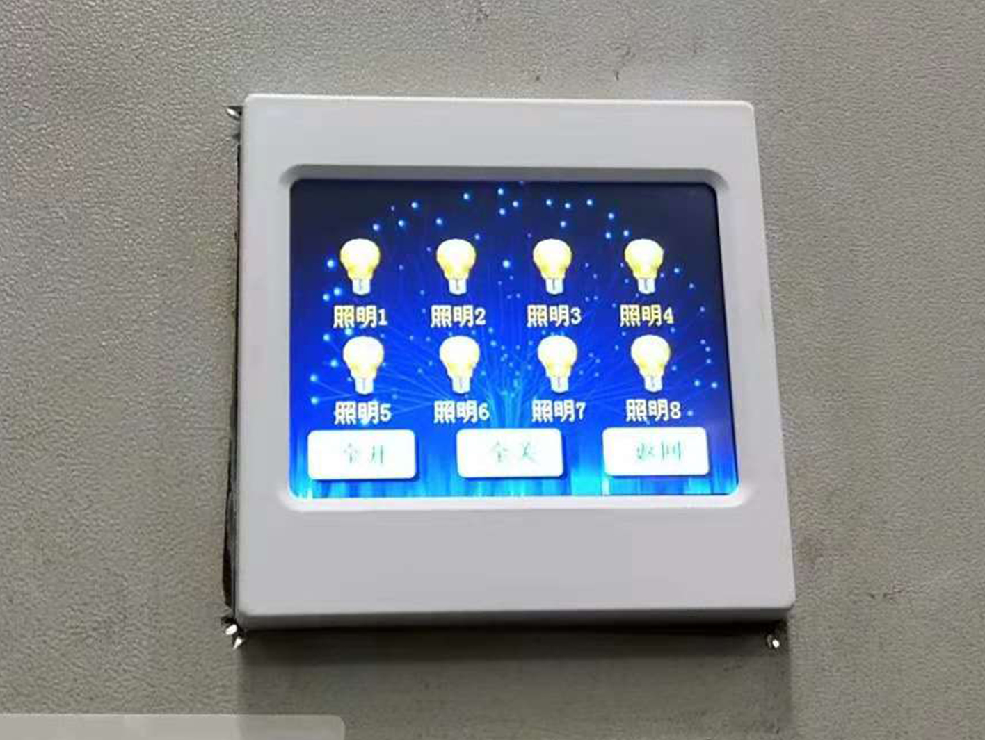 如上圖所示,在安裝上了控制模塊后,使用觸摸屏可選擇一鍵全開全關(guān)功能,簡潔明了。