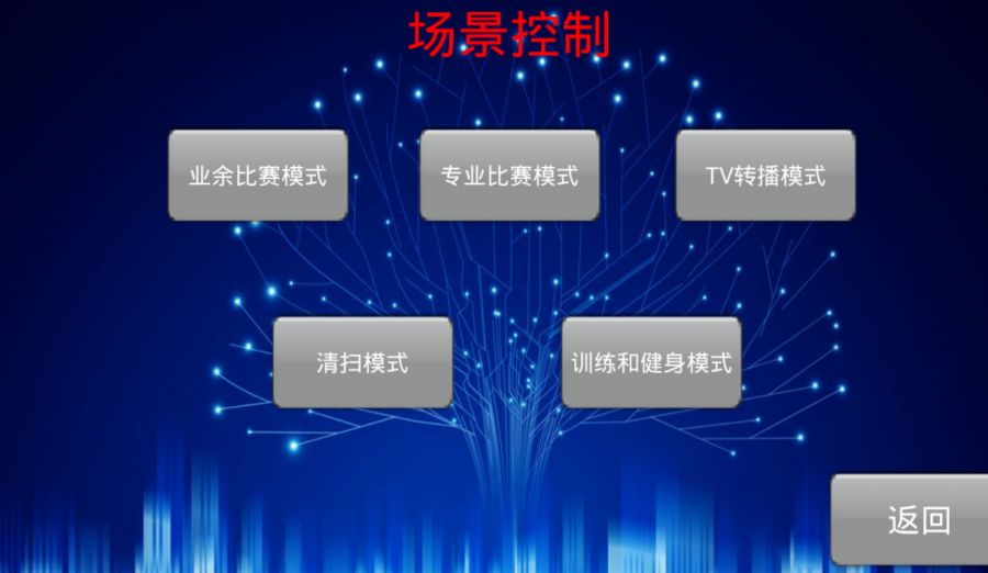 另外還可以直接通過面板切換專業(yè)比賽模式、業(yè)余比賽模式、TV轉(zhuǎn)播模式、清掃模式、訓(xùn)練和健身模式、全開和全關(guān)模式等不同的燈光場景。(效果如下圖)