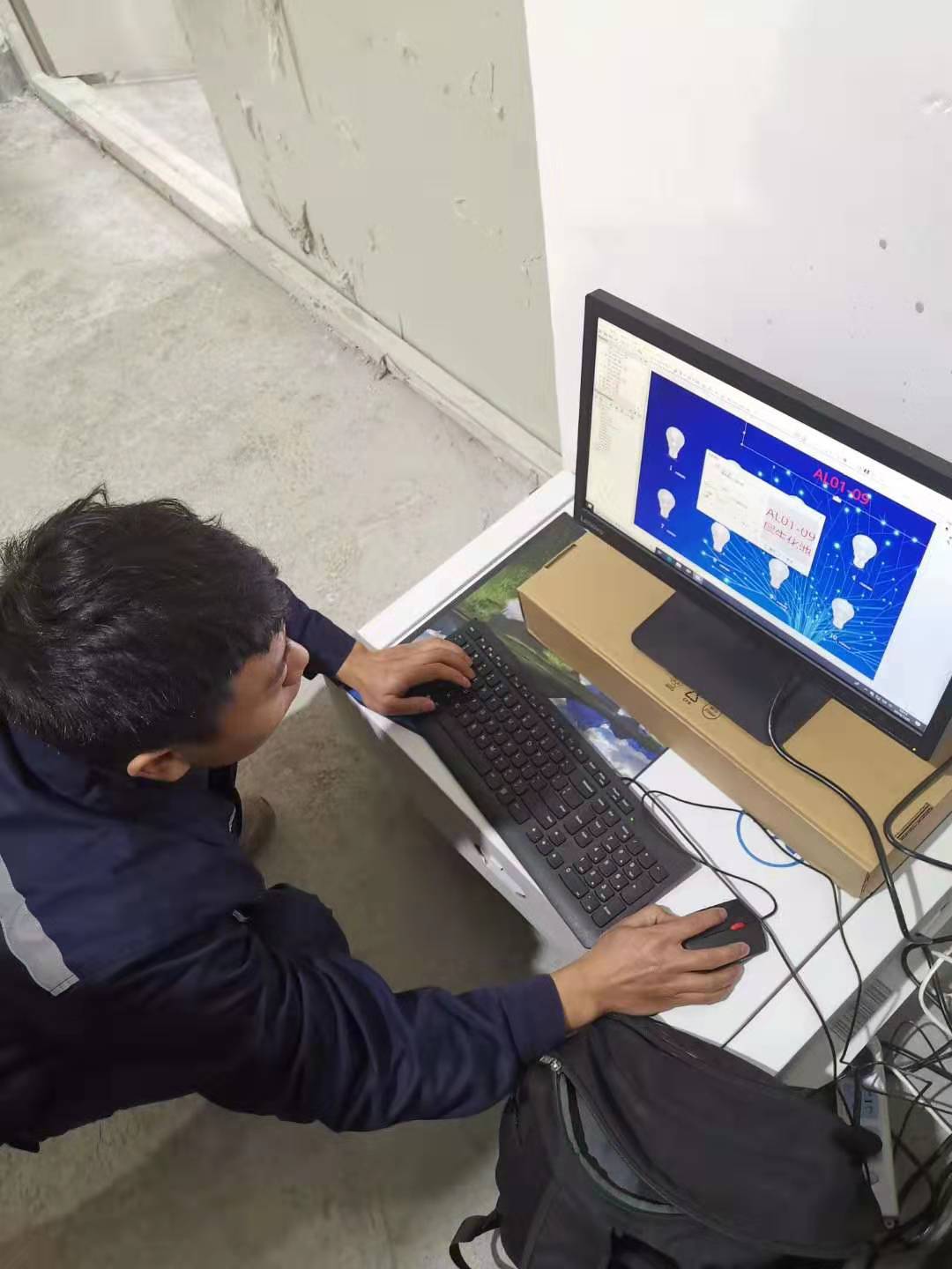 VSU智能照明控制系統(tǒng)可實(shí)現(xiàn)對區(qū)域內(nèi)所有燈具開閉,調(diào)光調(diào)色,定時控制,空調(diào)高中低三檔、電動門、電動窗簾開閉,可帶人感、光感,實(shí)現(xiàn)全自動化??刂品绞娇蛇x擇手機(jī)、電腦、觸摸屏、面板。根據(jù)客戶需求,VSU為安康江南再生水廠該項(xiàng)目設(shè)計的控制方式為電腦+觸摸屏。下圖為現(xiàn)場測試情況:
