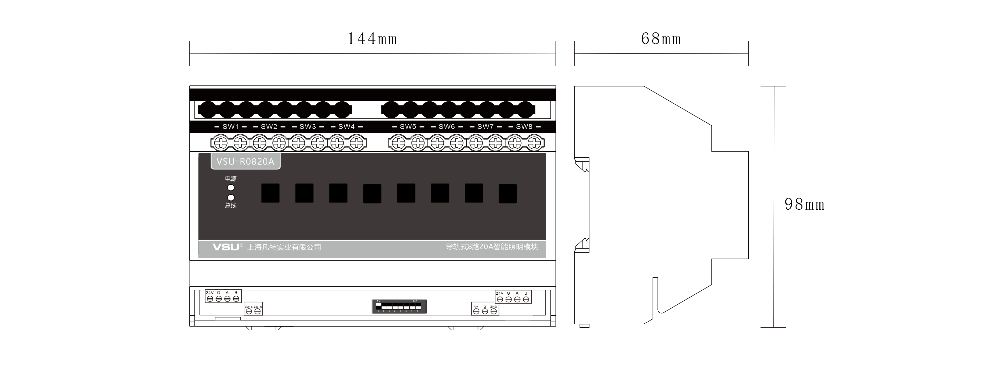 1,標準導(dǎo)軌式安裝占8個模數(shù)位;