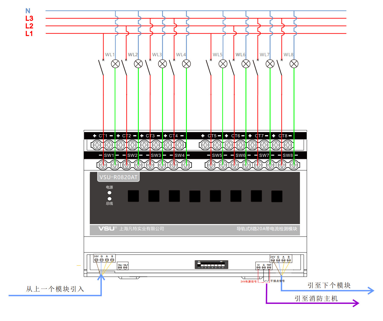 本產(chǎn)品為導(dǎo)軌式安裝,電流檢測(cè)為穿心式接線,含8路智能繼電器,每回路可獨(dú)立控4400W燈具的開關(guān),帶強(qiáng)切功能與互鎖功能;檢測(cè)每回路實(shí)際用電電流,通過實(shí)時(shí)電流與平時(shí)電流對(duì)比,精確排查回路燈具的損壞。 |