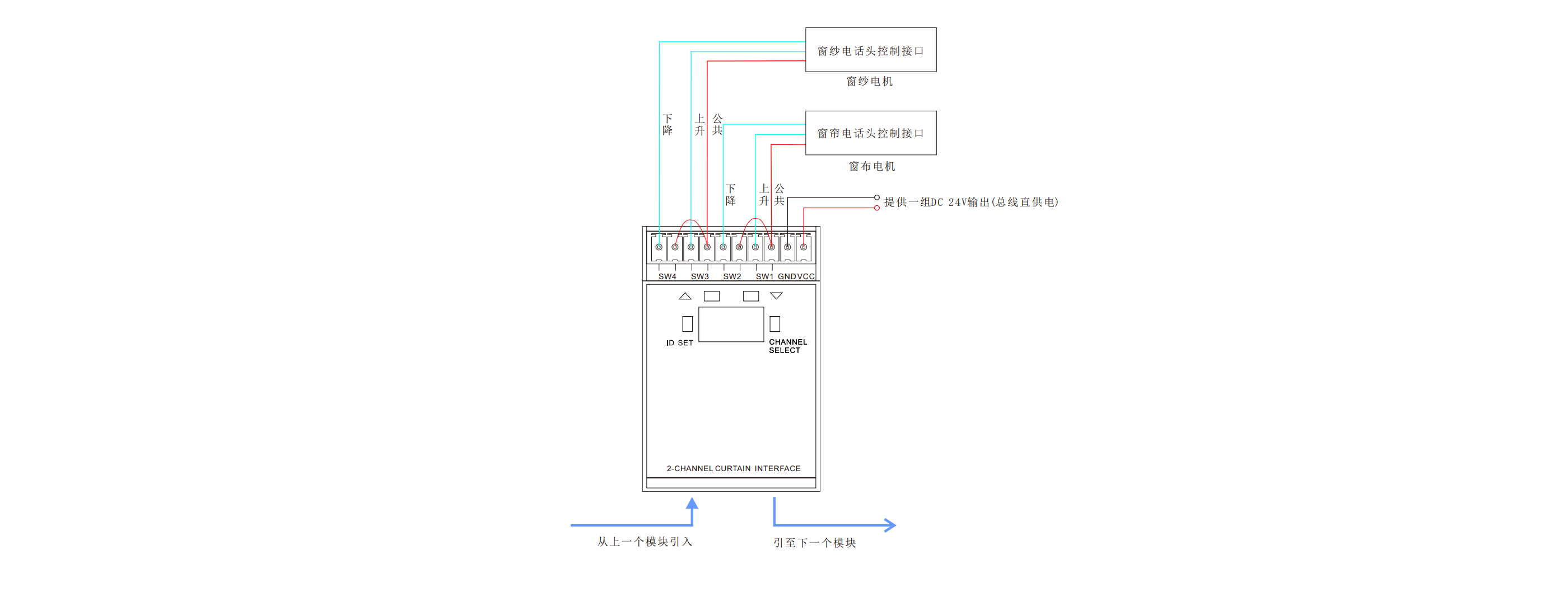 體積小巧可安裝在86盒內(nèi),控制2組弱電接口窗簾電機(jī),實現(xiàn)窗簾打開、關(guān)閉、停止操作;
