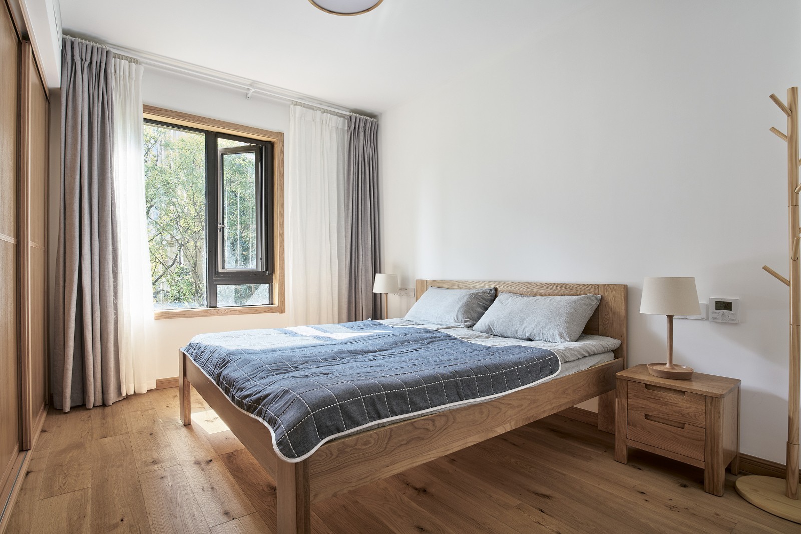 自然安寧的臥室,營造理想的睡眠環(huán)境。整面的儲(chǔ)物柜保證房間的干凈整潔。