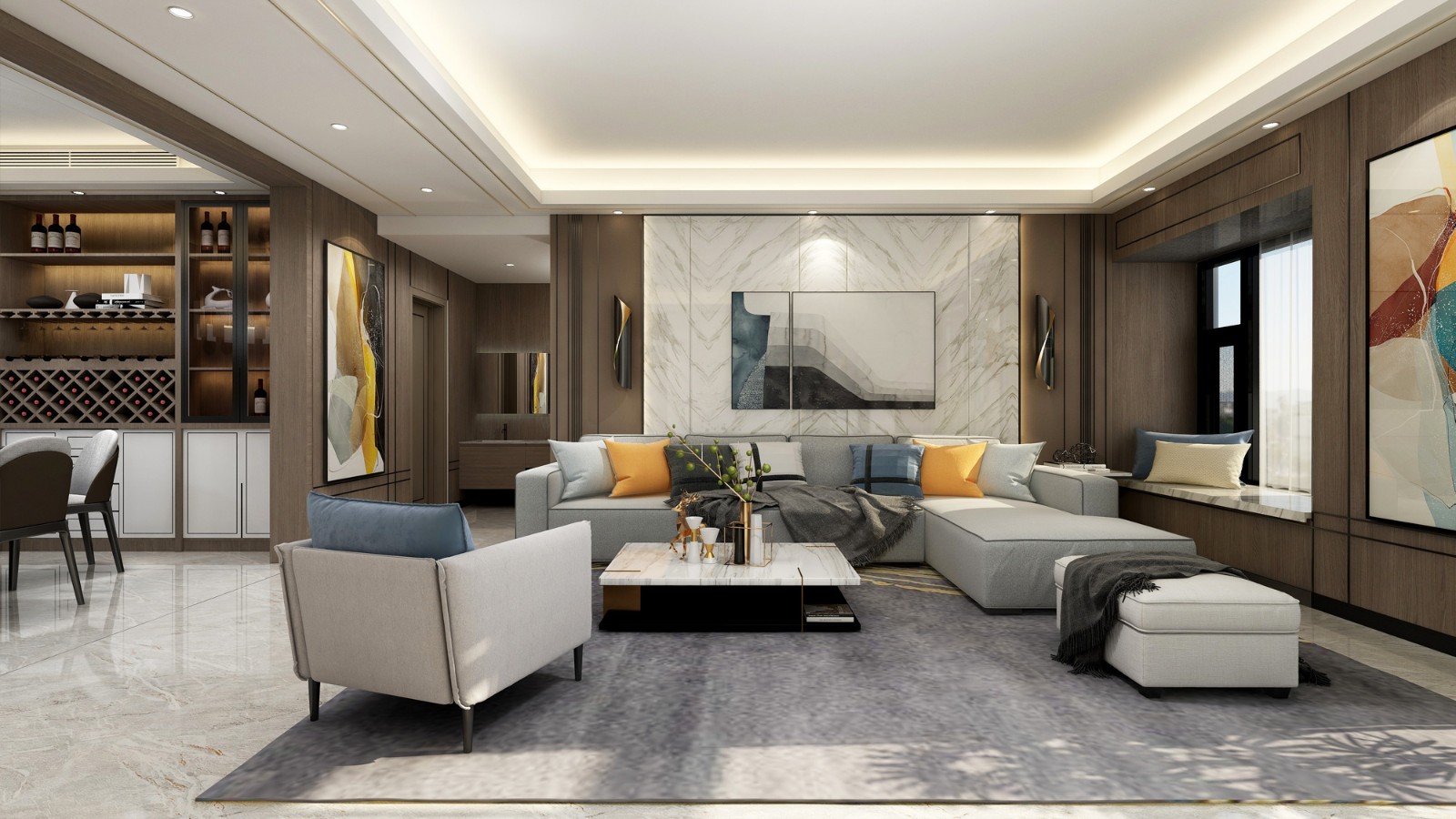 整個(gè)一樓客廳面積比較大,采用無主燈設(shè)計(jì),巧妙地將燈光設(shè)計(jì)在吊頂之中,是一種低調(diào)的奢華。