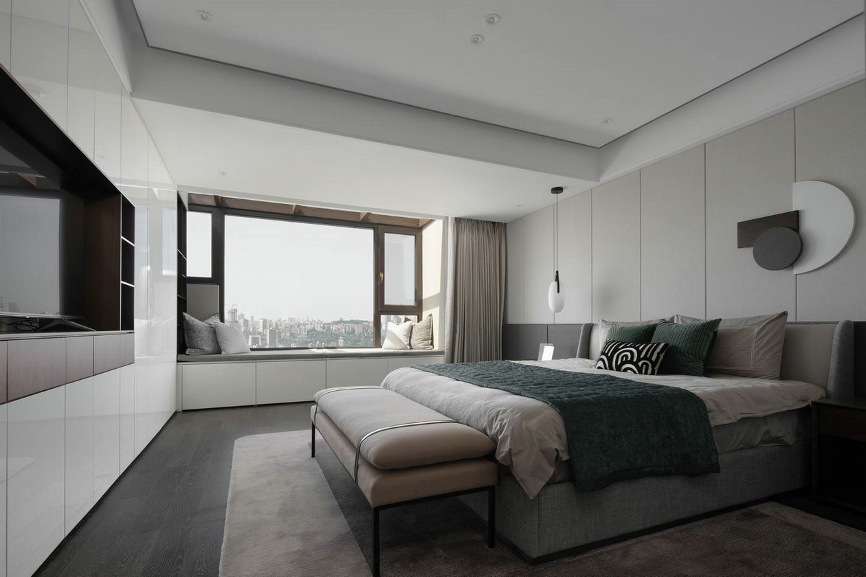 客廳茶室一體結(jié)合的做法,使空間體量有所增加,開闊的空間體驗也在無形中影響著業(yè)主的生活模式。